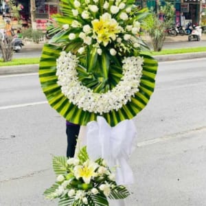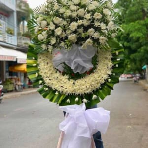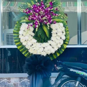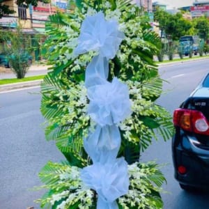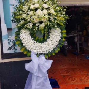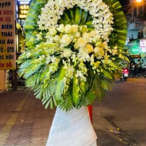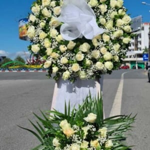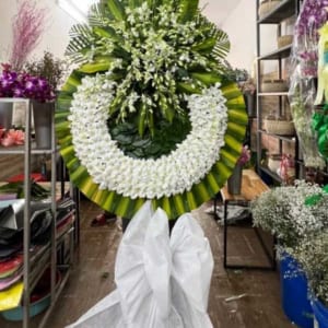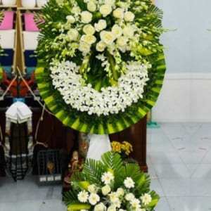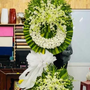 XT HCB 923 – Hoa Chia Buồn Vòng Lan Thái Trắng Dày 1 Tầng