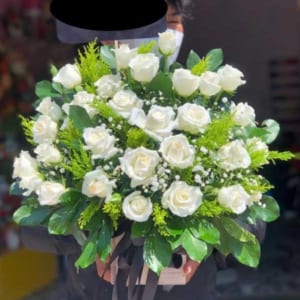 XT HCB 930 – Hoa Chia Buồn 1 Tầng Lan Thái Trắng Hiện Đại