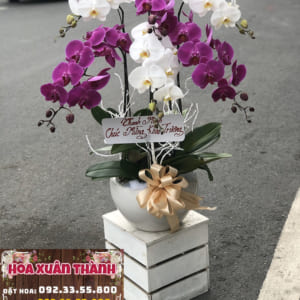 XT LHD 345 – Chậu Lan Hồ Điệp Trắng Tím 6 Cành
